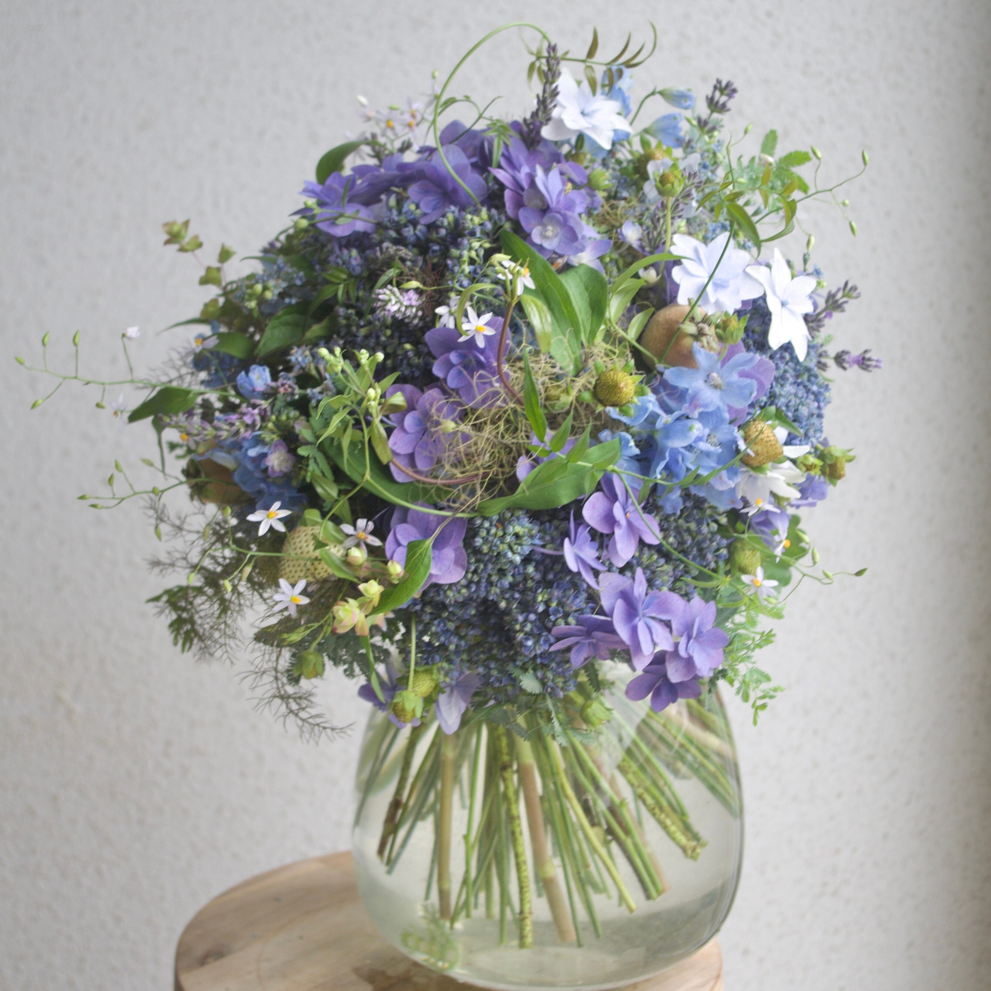 新鮮なお花にお庭の草木や枝物を組み合わせ、ナチュラルで美しい花束をお作りします。お