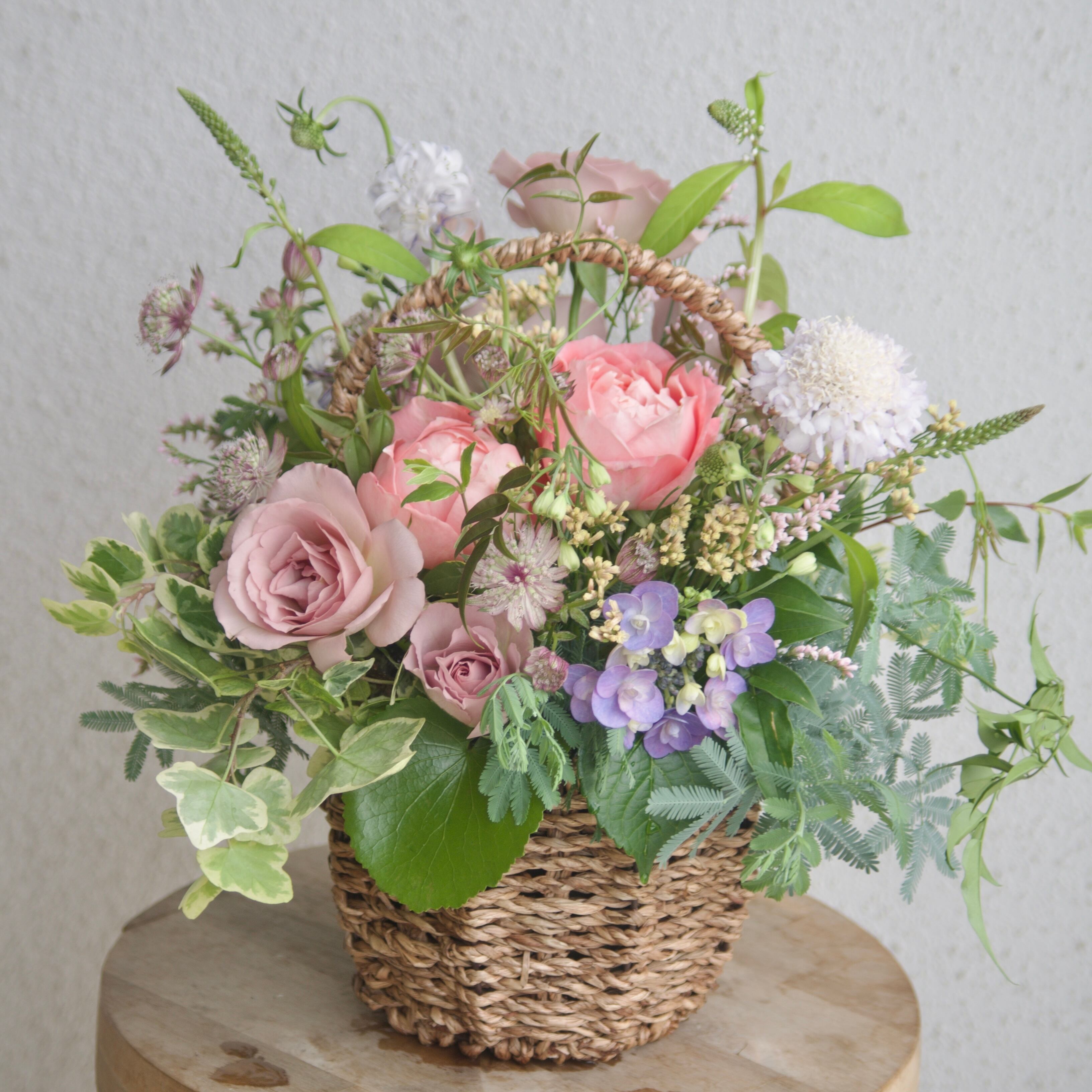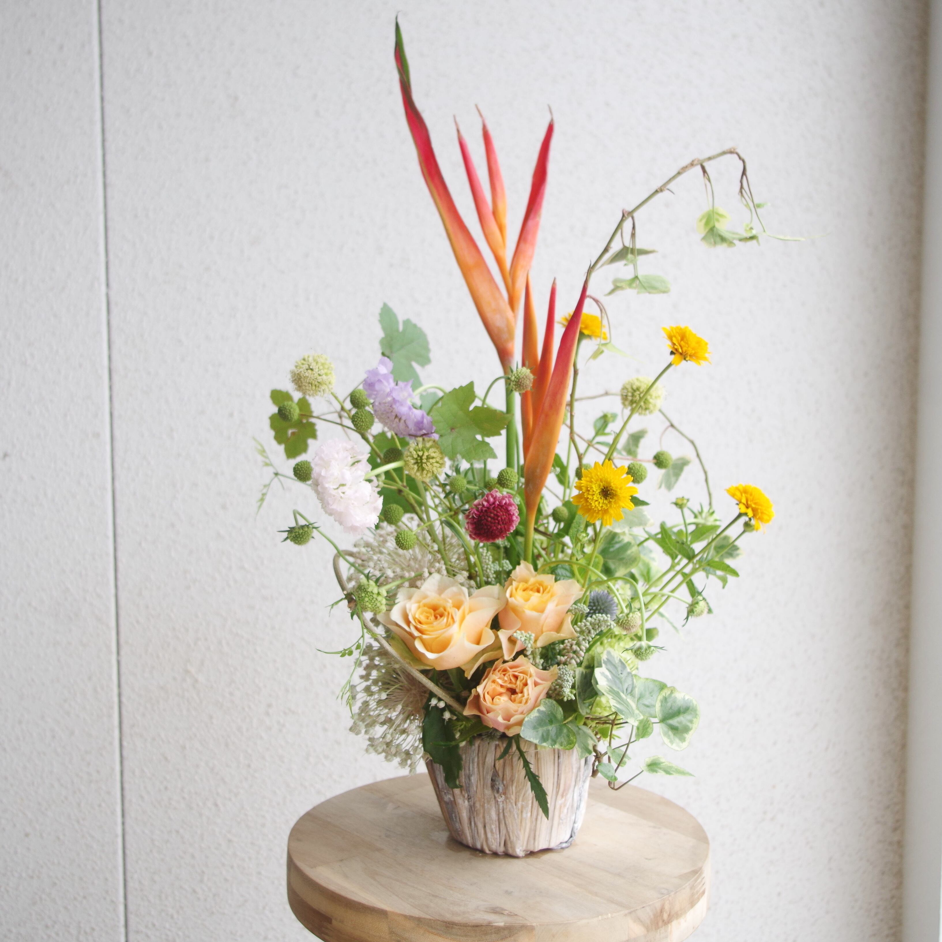 新鮮なお花にお庭の草木や枝物を組み合わせ、ナチュラルで美しいお庭のようなアレンジメントをお作りします。